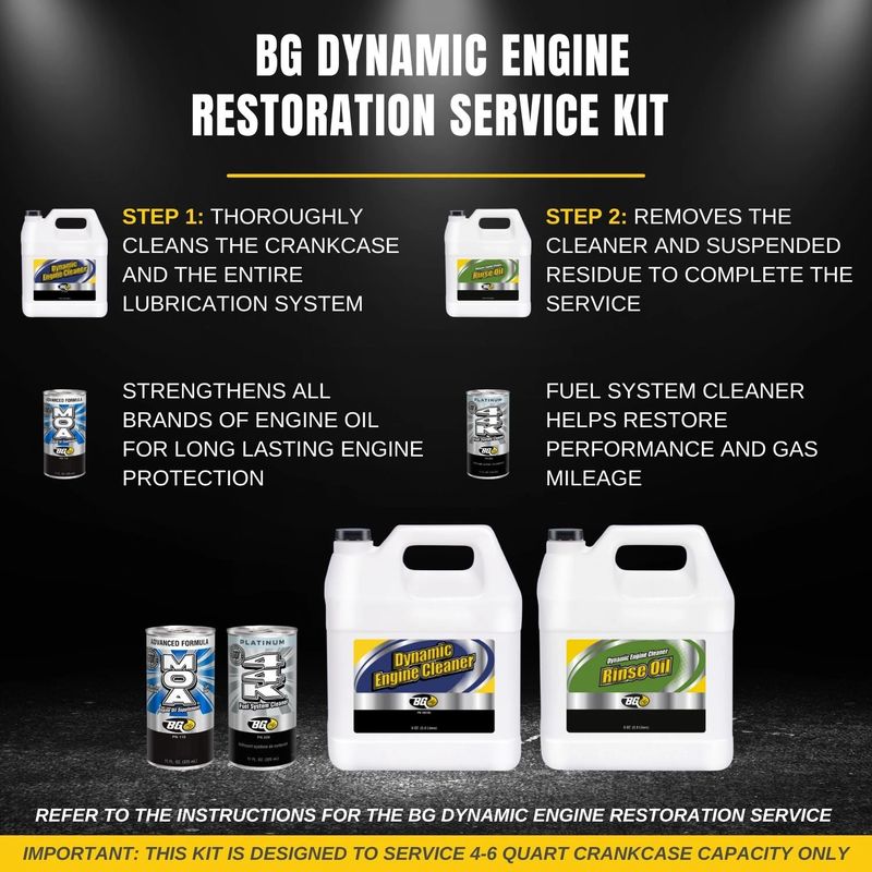 The BG Dynamic Engine Restoration Service is a professional‑grade, intensive cleaning process designed specifically for engines that are severely sludged, heavily neglected, or showing early signs of internal failure. This is NOT a routine maintenance service — it is a last‑resort restoration option for engines that need deep internal cleaning beyond what normal oil changes or BG EPR can provide.